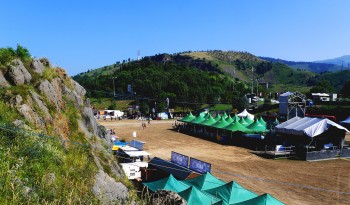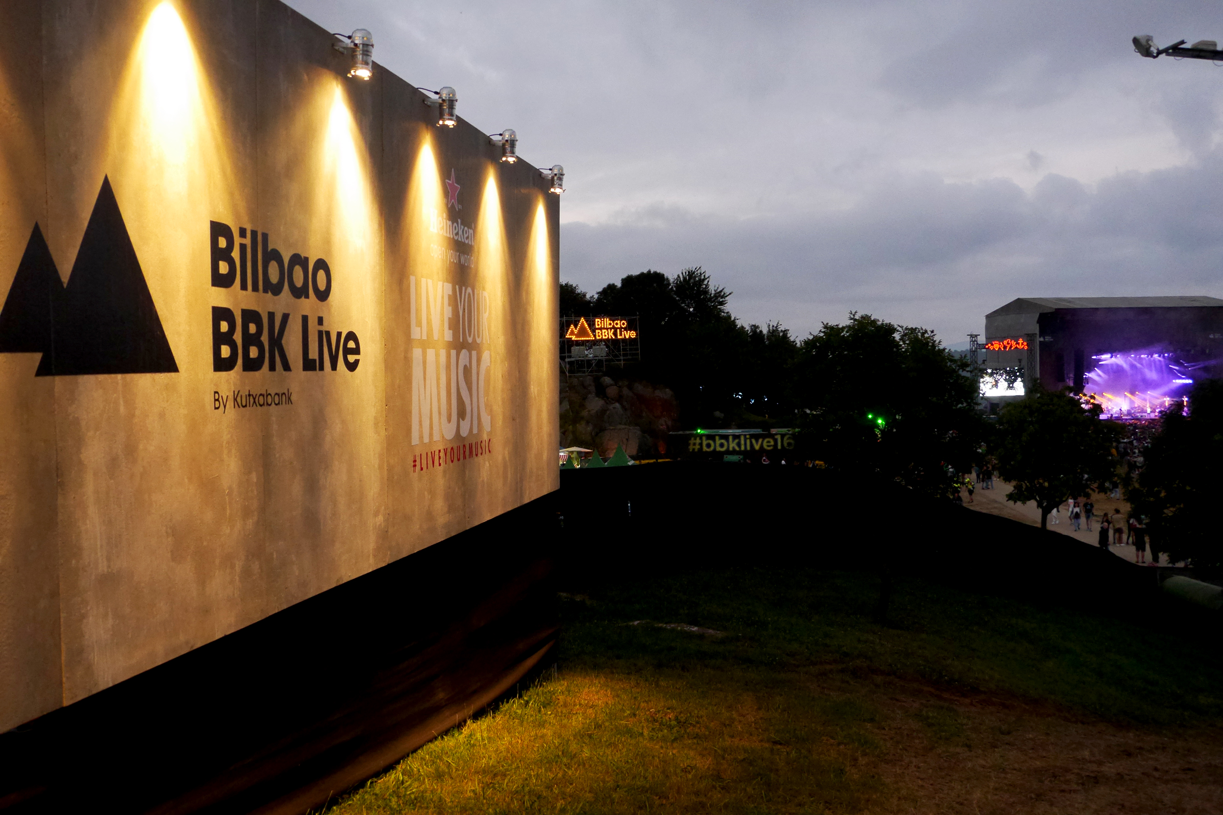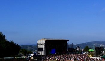 La première impression (outre celle d’avoir laissé un poumon en chemin) est agréable : le lieu domine la ville de Bilbao et le panorama est bluffant. On s’étonnera plusieurs fois de la brume donnant l’impression d’être à mi-chemin entre les nuages. Près de 100.000 m2 de parc naturel sont dédiés à l’événement afin d’accueillir les 40.000 festivaliers quotidiens. Tout est verdoyant et vallonné pour un cadre champêtre à mille lieux de ses concurrents nationaux où la tendance est plutôt au bitume.